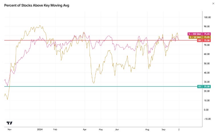 Sure, the market can go higher from here as we’re getting close to an ST oversold reading, but with MT/LT breadth that elevated in OB condition and MCSI accelerating below the 10dma, that's fighting the wrong fight for me on the long side. Flip that breadth extension chart upside down, and that's where I want to look for intermediate long swing.