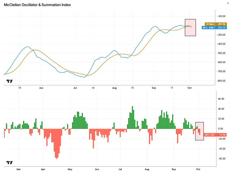 Breadth contraction is following through below the 10dma today, and we see an acceleration in the rate of change as well. (MCC osc)