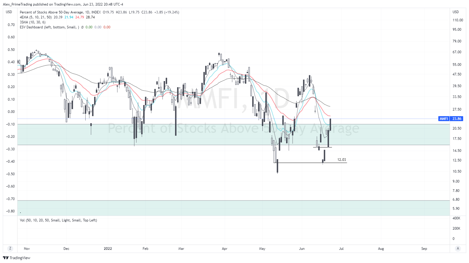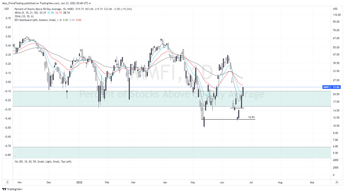 Stocks > 50dma (MMFI) Nice follow through today and we closed above our support area. That’s exactly what we wanted to see to confirm a potential move higher.
