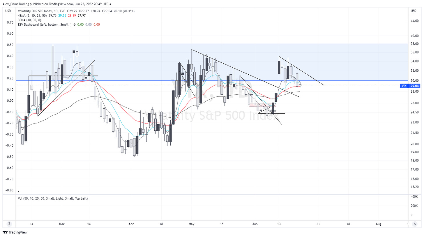VIX Pretty much unchanged…but did not retake 30$ important level, which is super positive here also.