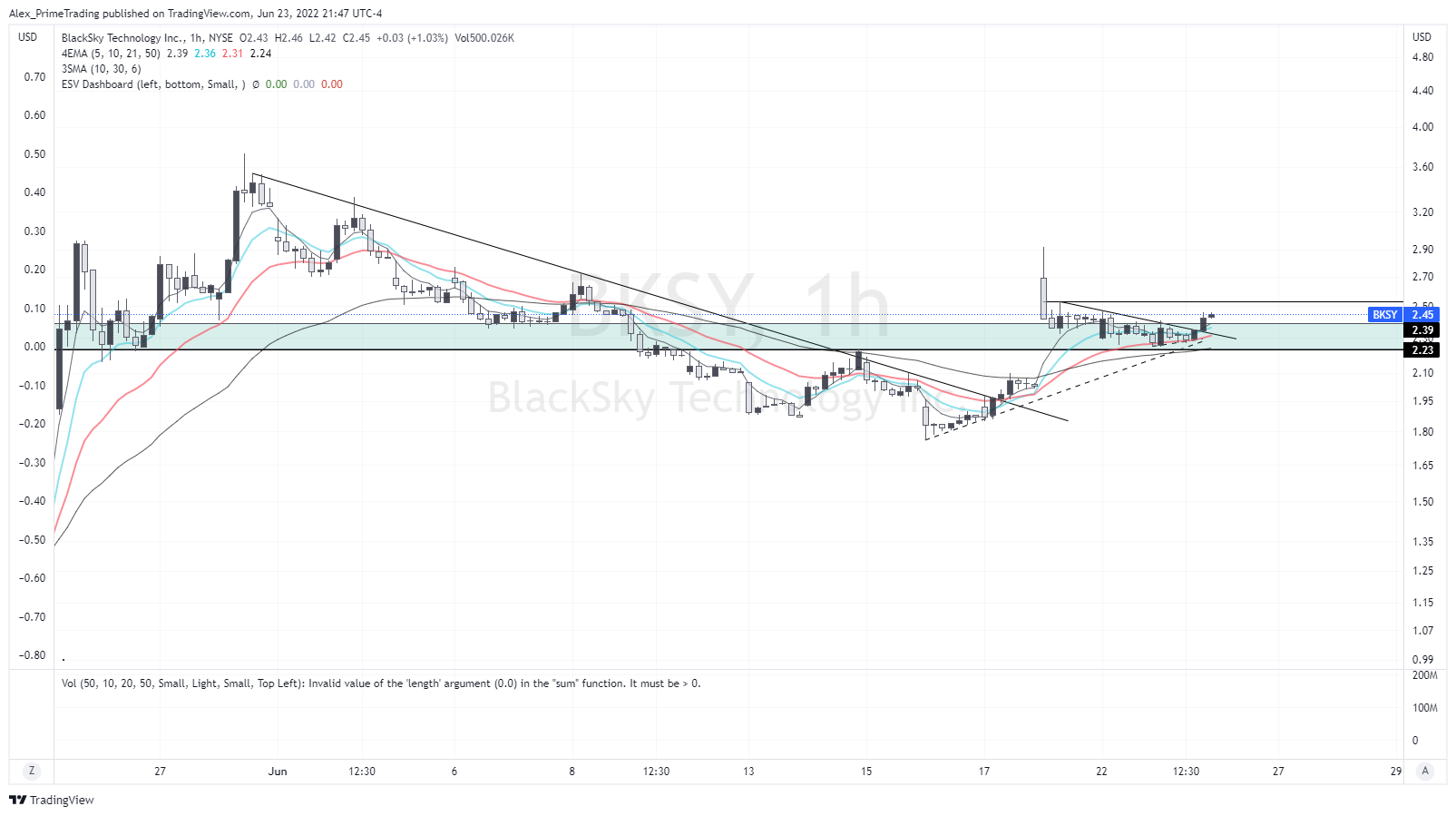 I see a WB then gap up, then pulling back to kma's on H1 and broke smaller WB around 14:30 today. It’s then a WBPB setup with a 2.53$ recent swing high entry pivot. AGAIN, HIGH RISK but high potential reward.