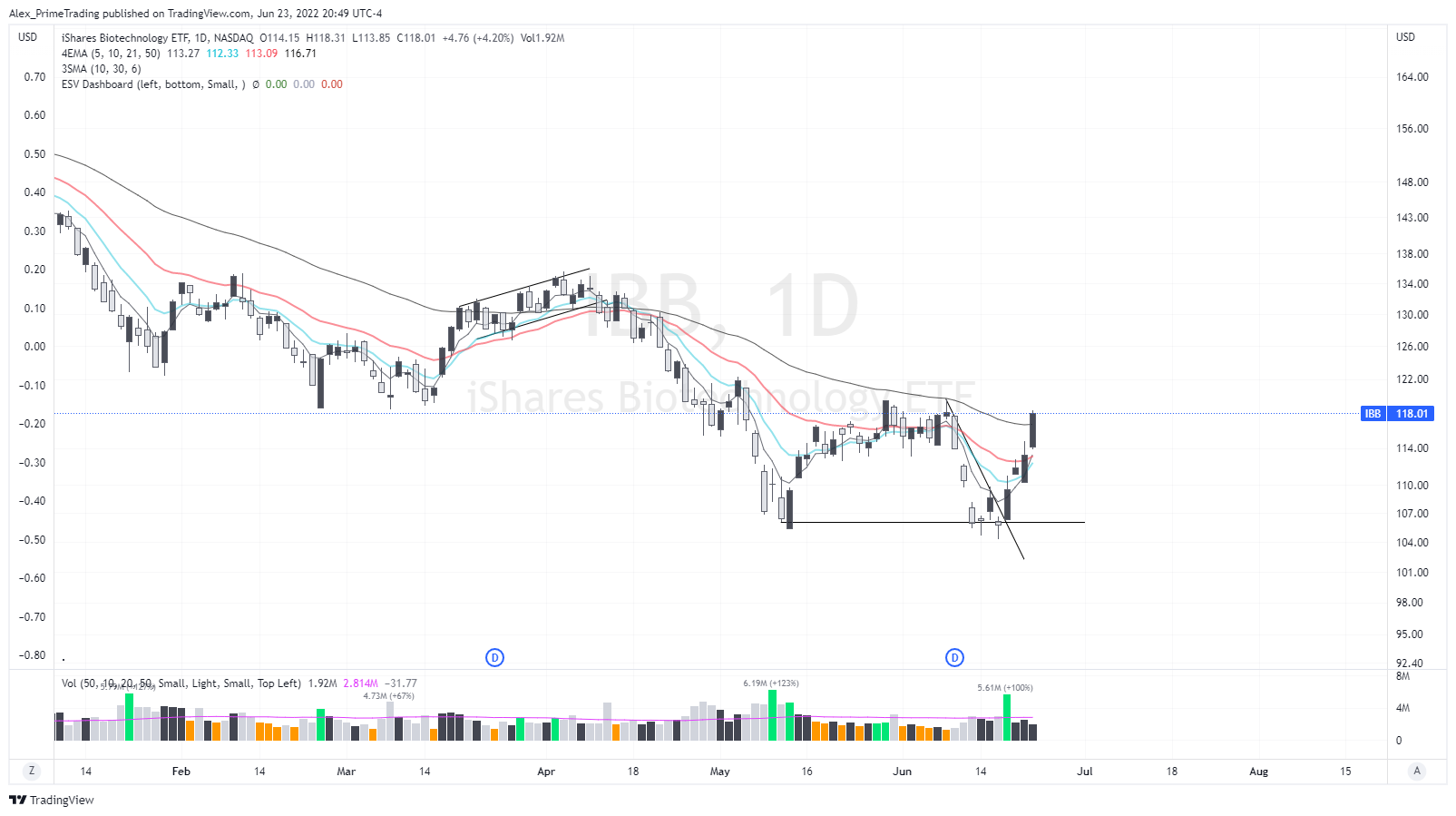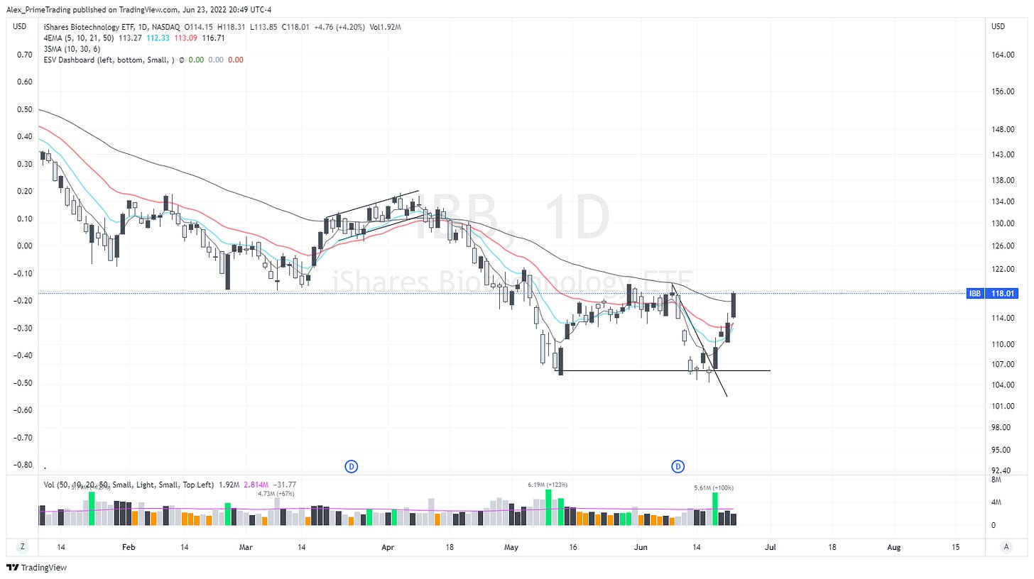 BIOTECHNOLOGIES (IBB) That’s EXACTLY what we wanted to see…and even more. We were able to follow through on that 21dma breakout yesterday and we even closed above the 50dma. That’s a very powerful push and this sector is clearly starting to lead even more.