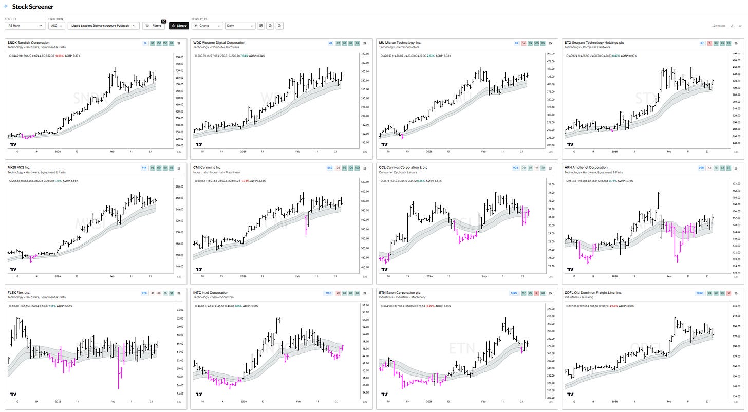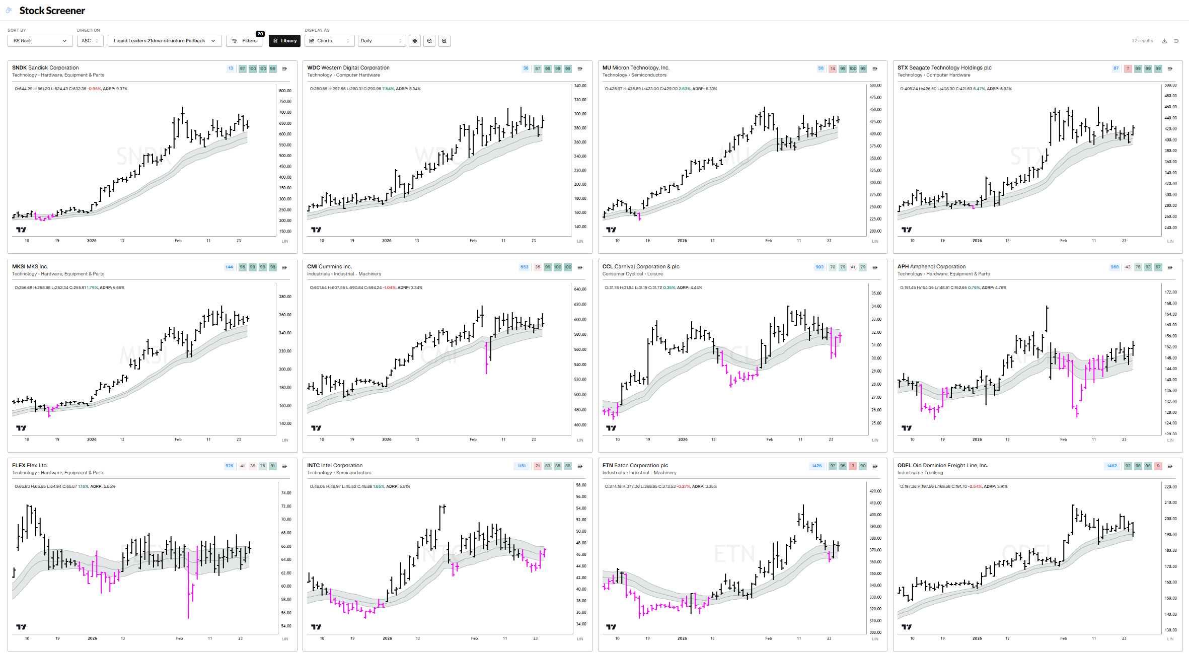 SNDK, WDC, MU, STX, MKSI, CMI, CCL, APH, FLEX, INTC, ETN, ODFL
