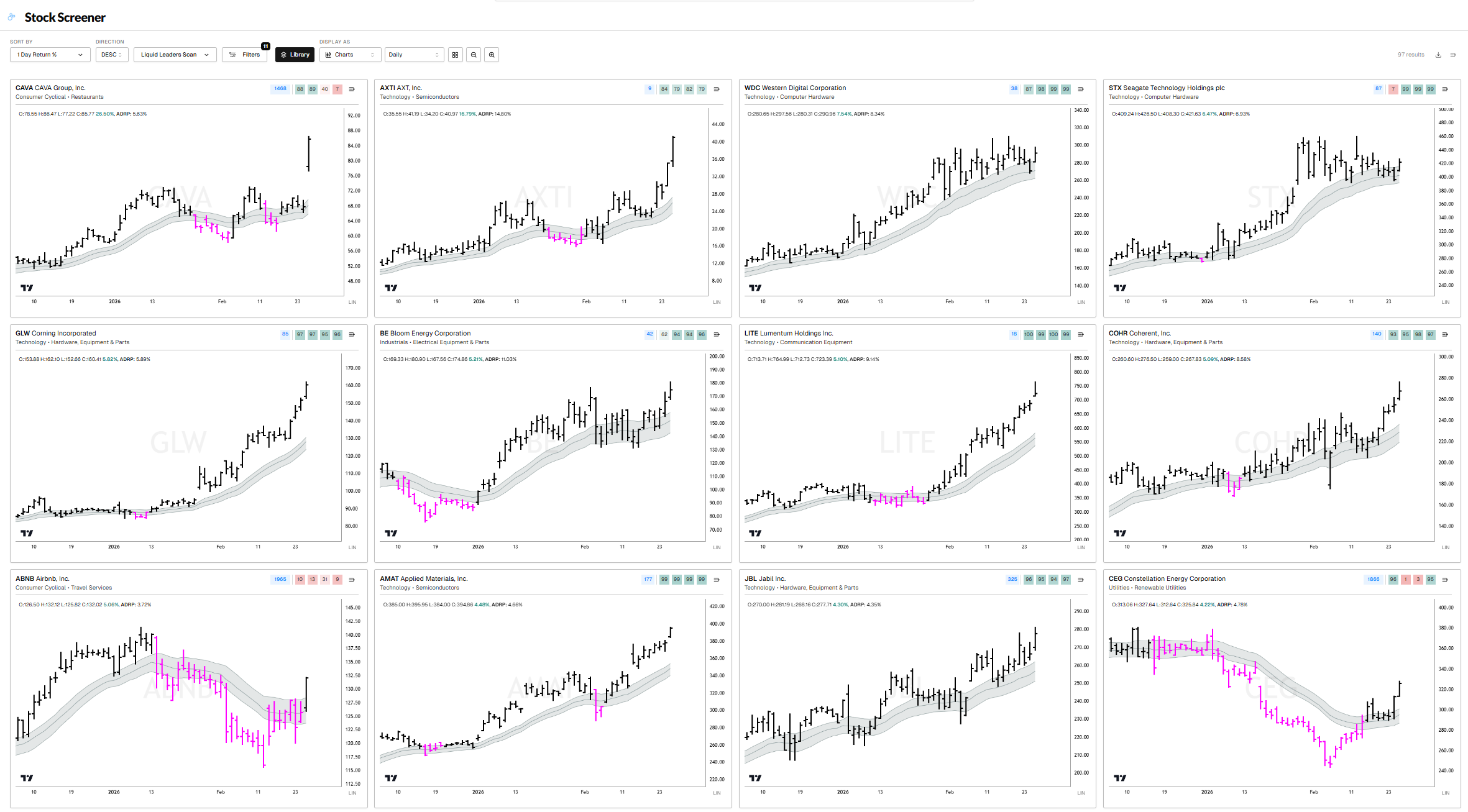 Liquid Leaders sorted by 1-Day Return (top daily RS)