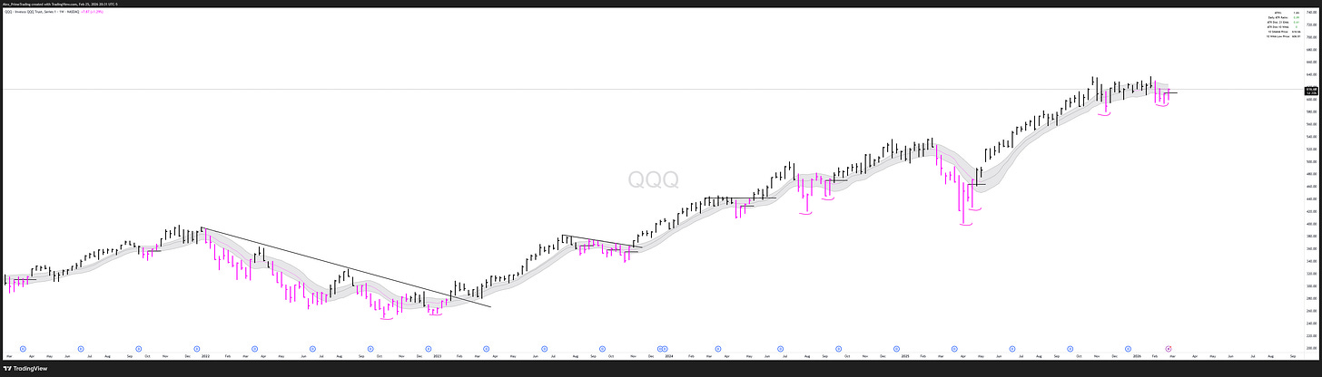 More constructive action today, as we reclaimed the weekly reversal pivot and the 10wma. We’re still just shy of it, and with NVDA’s earnings reaction, we’ll need to see whether we can get a clean reclaim or a rejection tomorrow.
