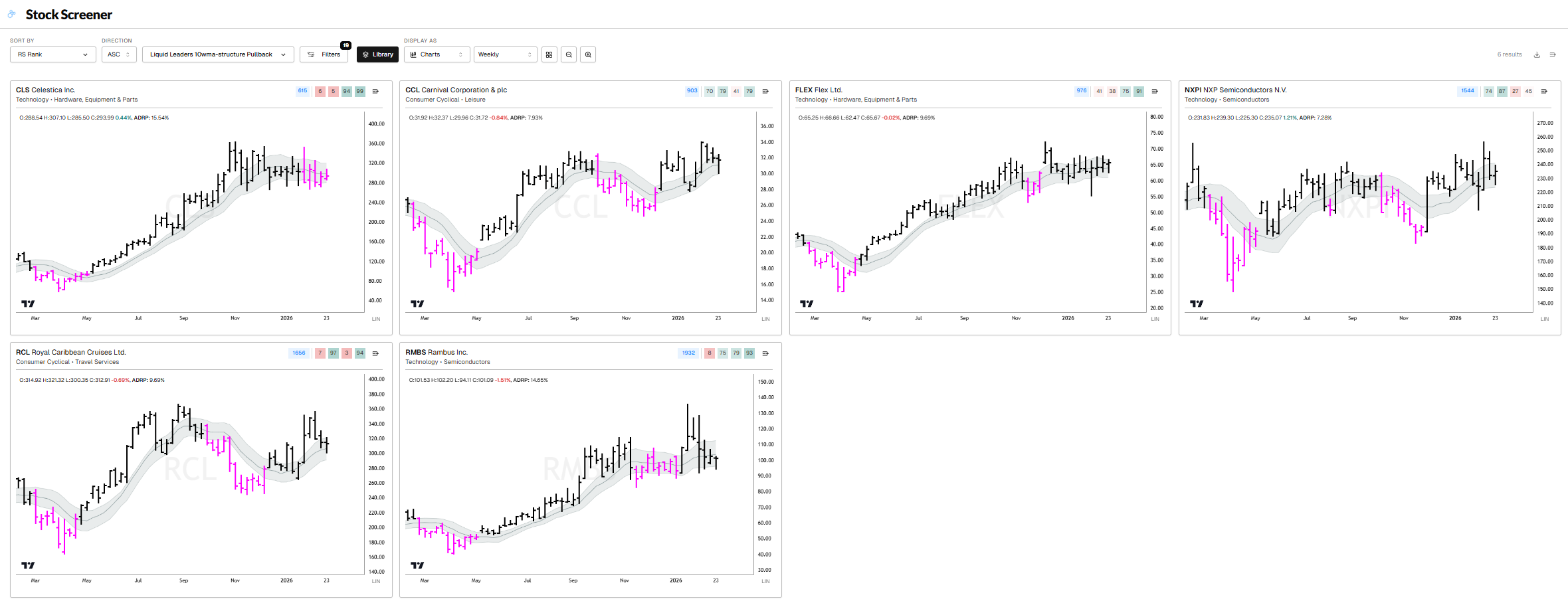 CLS, CCL, FLEX, NXPI, RCL, RMBS