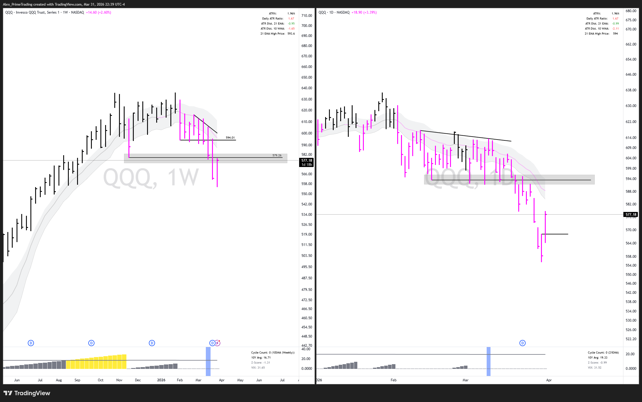 $QQQ PRICE ACTION (WEEKLY/DAILY)