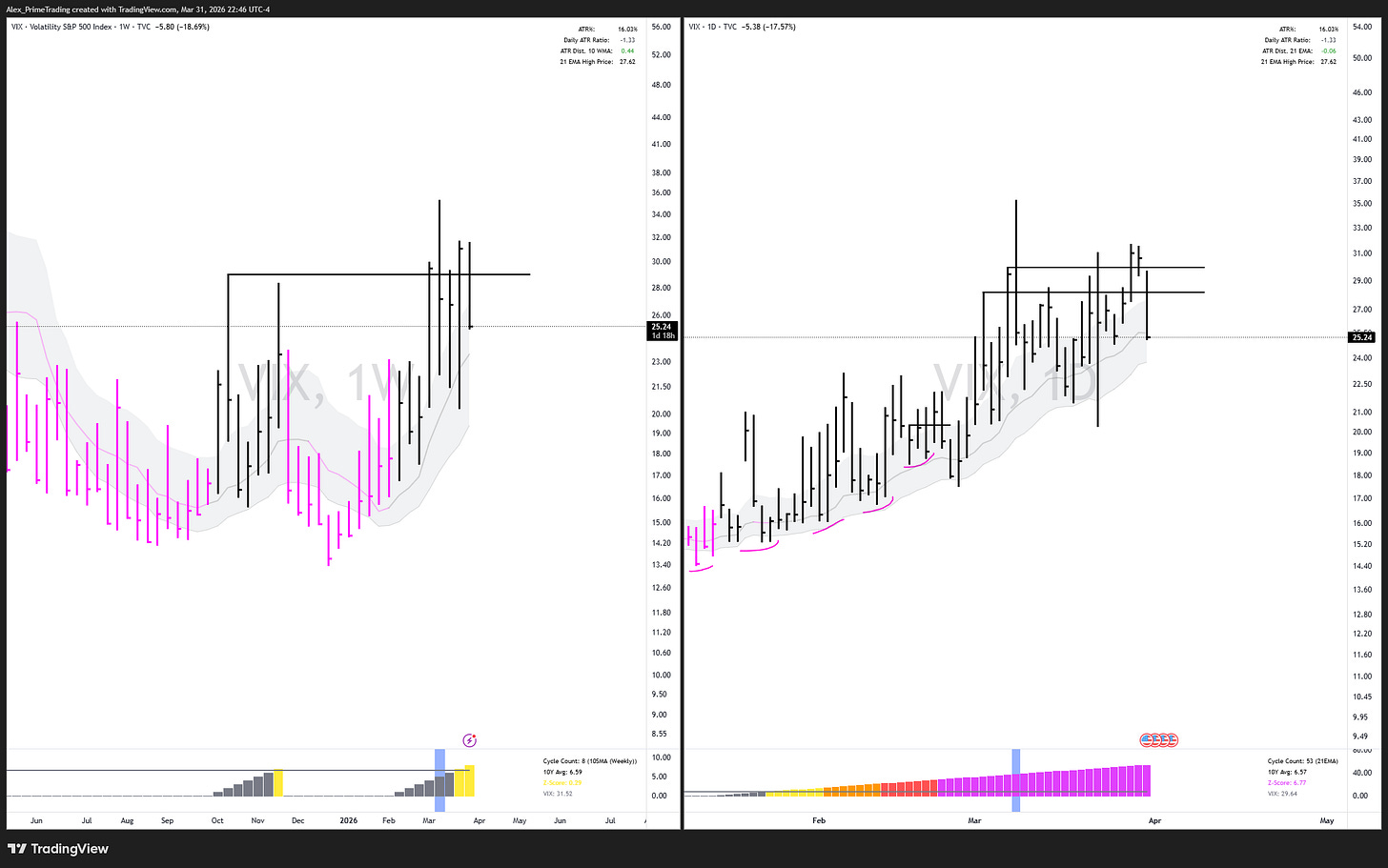 VIX UPTREND ABOVE RISING daily & weekly structures. Retest of the daily-structure today. Bounce or Break?