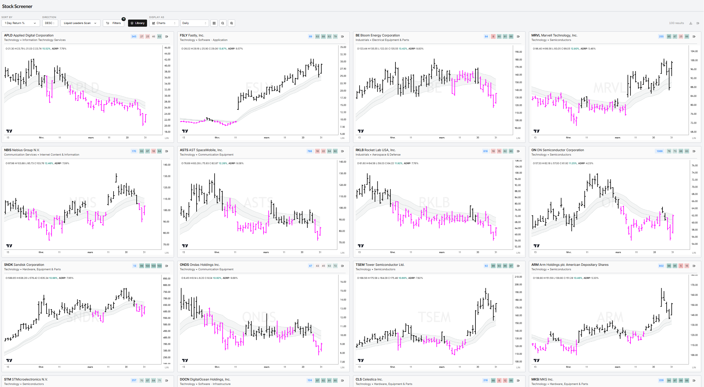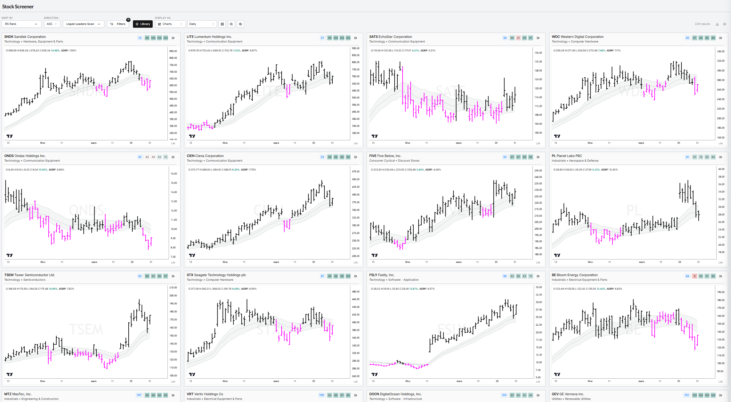 Liquid Leaders sorted by 1-Day Return (top daily RS)