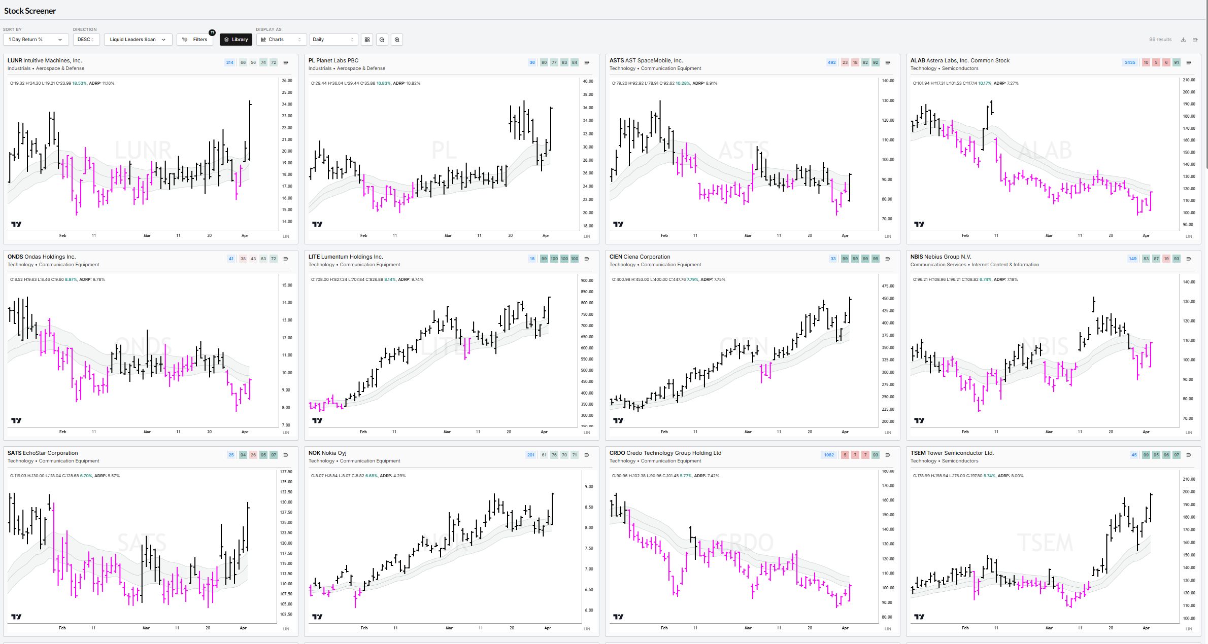 Liquid Leaders sorted by 1-Day Return (top daily RS)