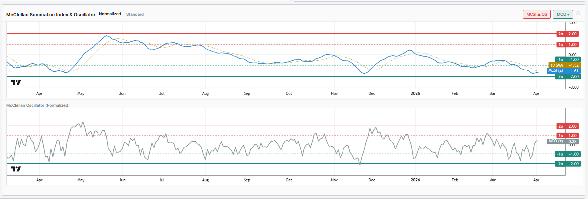 BREADTH $QQQ McClellan Oscillator/Summation (MCSI/MCO)