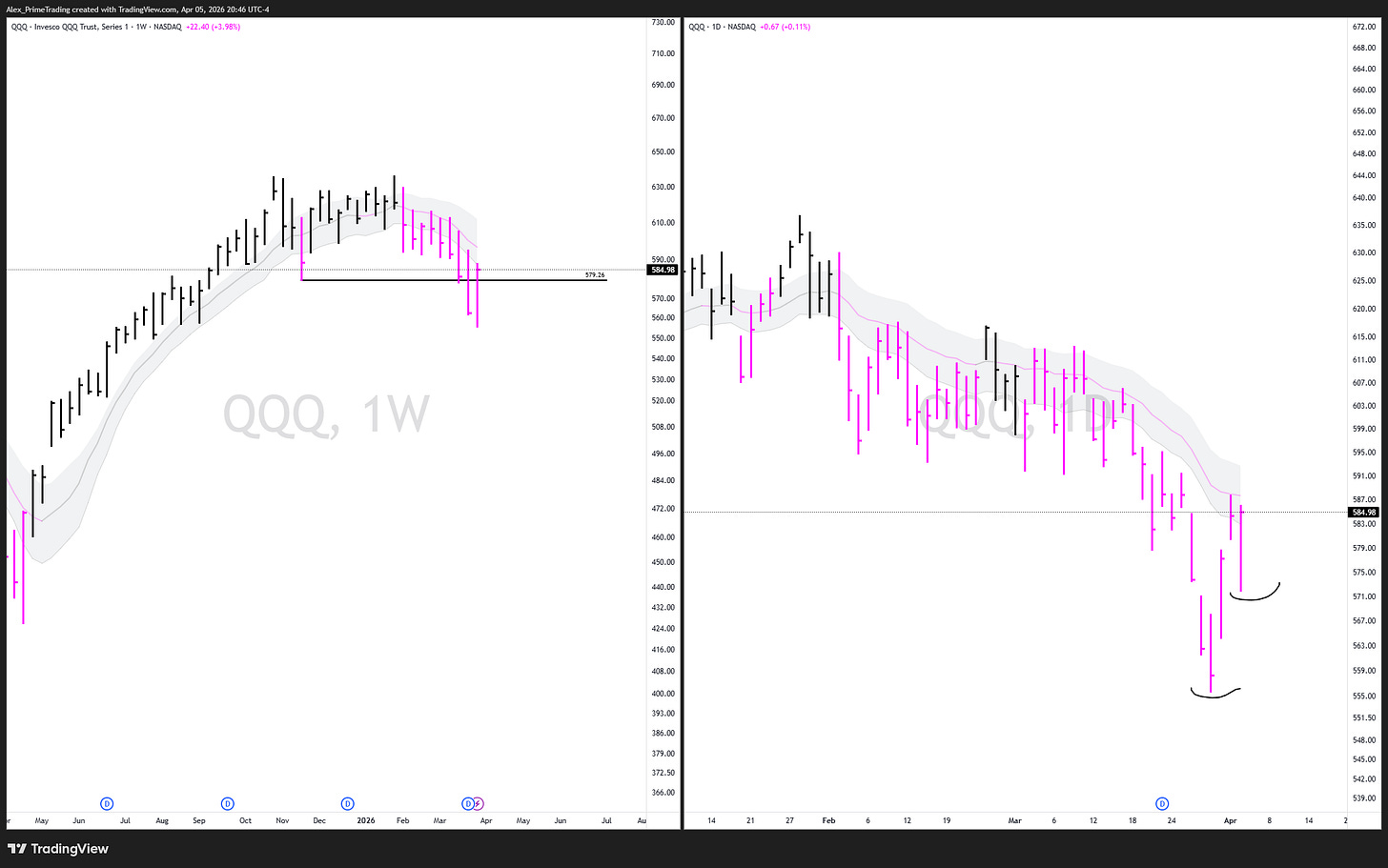 $QQQ PRICE ACTION (WEEKLY/DAILY)
